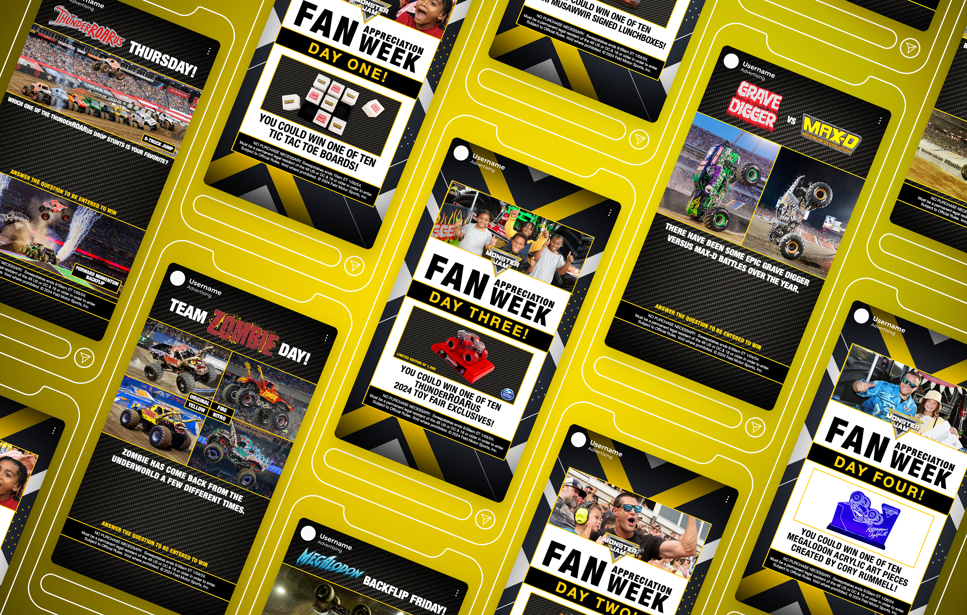Collection of designs for Monster Jam used during Fan Appreciation Week and Monster Jam World Finals